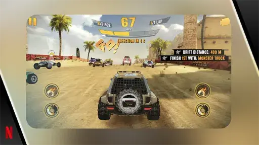 قم باستكشاف الطرق الوعرة التي تجعلك تنزلق عبر الكثبان الرملية وتتخطى خصومك بمهارة فائقة، وتفوق على منافسيك في كل منعطف وكلّ تحدٍ تواجهه داخل اللعبة بأسلوب قيادة ممتعة تفوق الحدود المألوفة في ألعاب السباق التقليدية. وانزلق بسيارتك كالبرق عبر المسارات الوعرة وتخطَّ جميع العقبات التي تواجهك لتصل إلى خط النهاية أولاً.