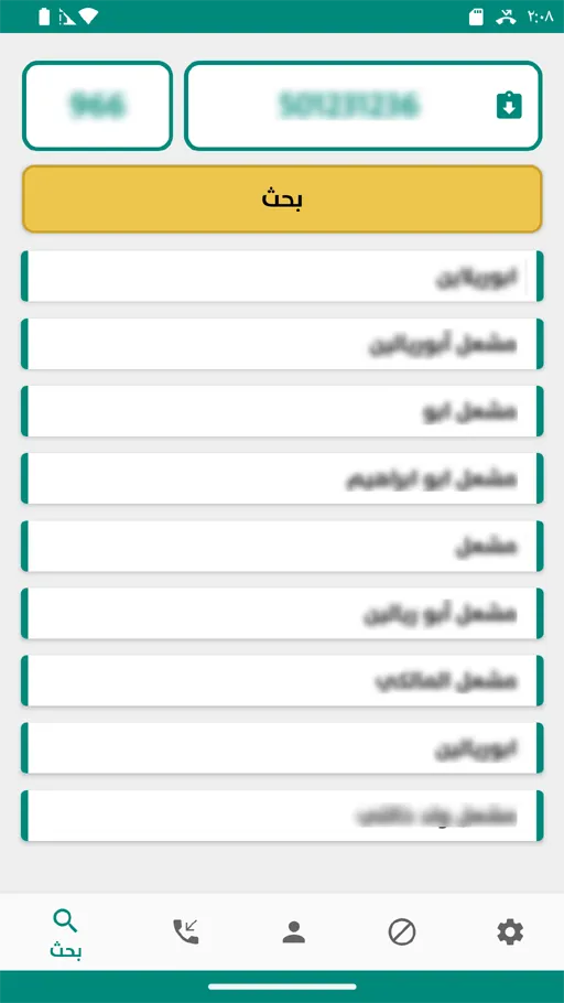 - البحث ( Search ) : وأخيراً آخر صفحة في الواجهة إن كانت اللغة العربية هي المٌفعلة وستكون الصفحة الأولى إن كانت اللغة الإنجليزية, بغض النظر عن ذلك فـ هذه الصفحة هي الصفحة الأساسية في تطبيق دليلي مهكر Dalily Caller ID Apk Mod حيث أنها تقدم الميزة الأساسية وهي ميزة البحث عن الأرقام وهوية المتصلين, سيظهر مٌحرك بحث ومن خلاله يٌمكن كتابة رمز الدولة ورقم الهاتف بصورة مباشرة.