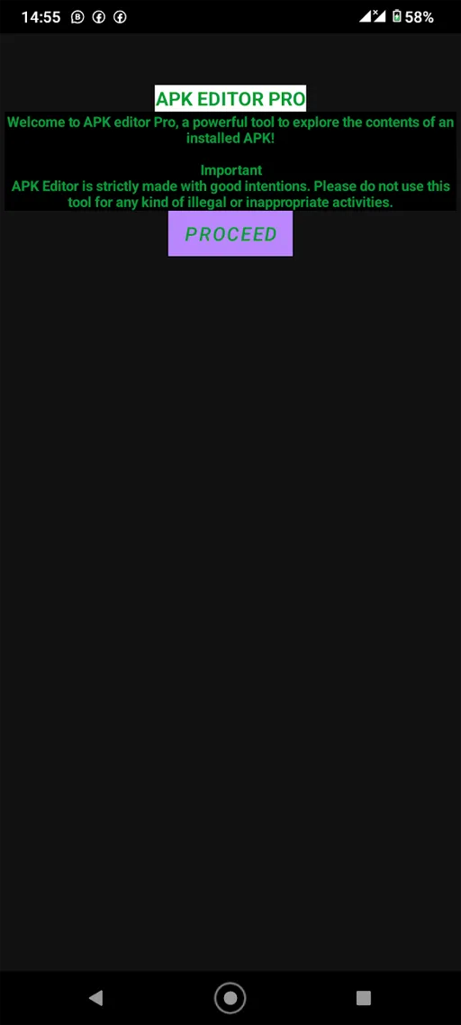 • واجهة سهلة وبسيطة : بالنسبة للواجهة الخاصة بـ برنامج APK Editor Pro النسخة الأصلية فإنها تعتبر واجهة سهلة جدًا وبسيطة، وبالتالي فإنه يمكنك التعامل معها واستخدامها حتى وإن كنت مبتدئ في استخدامك لهذا النوع من التطبيقات وذلك لأنها ليست معقدة أو صعبة التعامل بل على العكس تمامًا، فإنها سهلة للغاية وبسيطة إلى حد كبير، ويمكنك ملاحظة ذلك من المرة الأولى التي تتعامل فيها مع التطبيق.