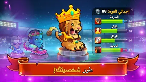 - عند إنهاء خطوات تغيير اسم المستخدم تلاحظ ظهور مكونات واجهة لعبة Head Ball Apk Mod مهكرة بوضوح, حيث تتكون الواجهة من شريط ادنى الشاشة به عدة خيارات أساسية وتلاحظ اعلى الشاشة عدد النجوم التي قمت بجمعها بجانب العملات المعدنية والماسات, بالإضافة الى وجود ايقونتين بجانب الشاشة من ناحية اليسار ايقونة خاصة بالماسات والاخري بالدعم, ومن الجانب الأيمن تجد ايقونة الهدايا وأخرى لإظهار أدوات الضبط, كما تجد في منتصف الشاشة المتجر الذي تقوم بالشراء من خلاله واخر بالطاقة التي تقوم منها بترقية الشخصية بالاضافة الى وجود الشخصية التي تستخدمها في اللعب.