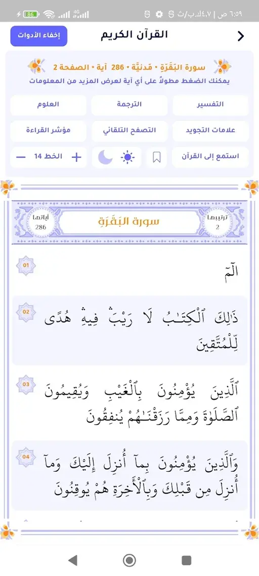 - إذا كنت تريد قراءة القرآن أو التعرف على تفسير الآيات الكريمة، وقراءة الأحاديث النبوية فالخيار السابق هو ما عليك فتحه، حينها كما ترى أمامك ستظهر لك جميع الخدمات الإسلامية التي يقدمها مثل الأدعية والقرآن الكريم والاحاديث وأمور أخرى متعلقة بالدين الاسلامي.