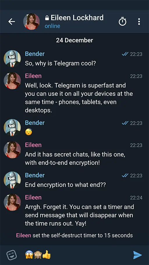 - سهولة التواصل : يحتوي تلغرام لايت نسخة قديمة Telegram Lite مهكر على محرك دردشة واسع النطاق أي أنه لا يتوقف على توفير الدردشة بمنطقة بعينها, بل يمكنك تحديد المستخدم المراد الدردشة معه مهما إن كان الموقع الذي يوجد به هذا المستخدم, كما تتوفر أساليب متعددة للتواصل مثل الدردشة الصوتية والدردشة النصية, بالإضافة لدردشة الفيديو أيضا.