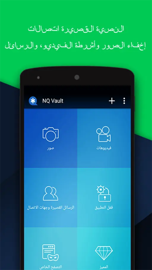 • اخفاء الصور ومقاطع الفيديو : يمكنك من خلال التطبيق اخفاء الصور ومقاطع الفيديو من على الجوال واضافتها الى المعرض داخل التطبيق لحمايتهم.