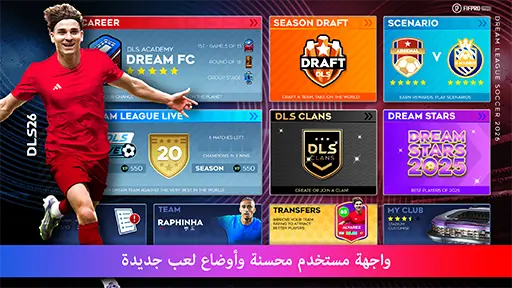لعبة دريم ليج Dream League Soccer 2026 مهكرة هي لعبة كرة قدم شاملة ومتكاملة، حيث يمتلك اللاعب منذ البداية صلاحية تدريب أفراد الفريق الذين يحتاجون لصقل مهاراتهم، إذ تعمل جلسات التدريب على رفع تقييماتهم تدريجياً وبشكل ملحوظ. ومن الجدير بالذكر أن اللعبة تتيح تعزيز الفريق بضم لاعبين محترفين عبر سوق الانتقالات، الذي يضم قائمة متجددة تمكّن اللاعب من اختيار وشراء الأسماء التي يحتاجها فريقه بالفعل.