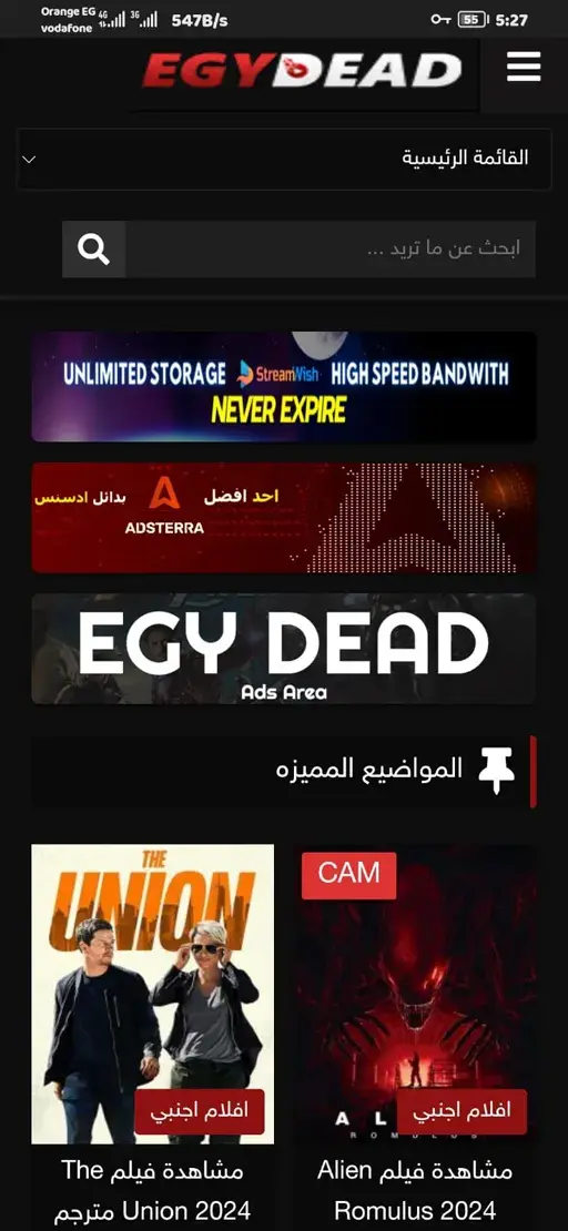 البث المباشر والنشرة الإخبارية في موقع ايجي ديد EgyDead Apk للأندرويد