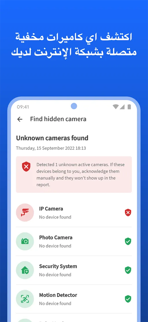تلك الخدمة يقدمها برنامج Fing Network Tools Apk Mod عن طريق البحث عن المنافذ المفتوحة والتي قد تؤدي للوصول الخارجي, من المهام الأمنية التي يمكن الإستمتاع بها هي البحث عن الكاميرات المخفية مما تستطيع اكتشاف الكاميرات المخفية في الشبكة الحالية, الجدير بالذكر أن خدماته لا تقتصر على فحص الثغرات فقط بل يعمل أيضا على تقديم النصائح والخطوات التي يمكن القيام بها لتعزيز مستوى الأمان الخاص بالشبكة ومنع عمليات التسلل التي تحدث عليها.