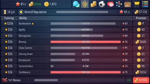 تطوير المهارات والقدرات الرياضية في لعبة Football Superstar 2 Mod Apk