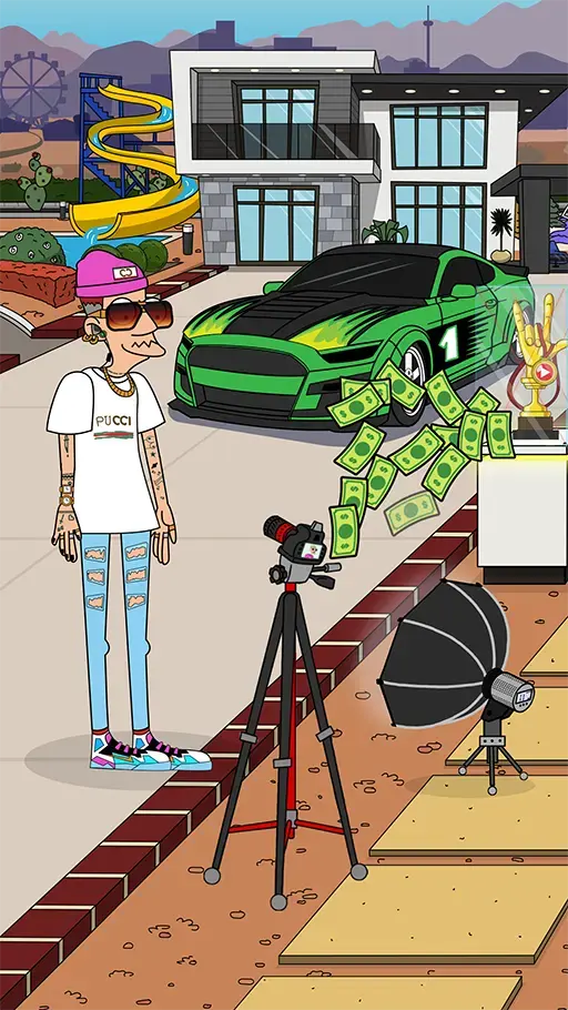 فكرة بناء القناة بعد تنزيل لعبة Lamar Idle Vlogger مهكرة بالعربية مجانا هي إنتاج محتوى متميز وجذاب في صورة مقاطع فيديو تنافسية حيث يتم عرض أفكار على اللاعب وكلما قام بتنفيذها بشكل أفضل تحصل على تفاعل أعلى حتى يصبح قناتك هي الأكثر مشاهدة وبالتالي تحقق أرباحاً أكبر.
