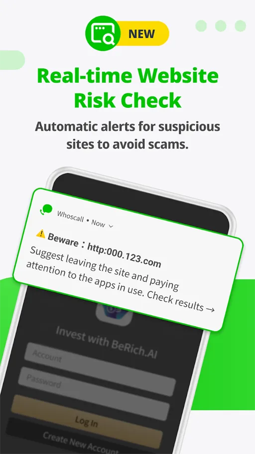 لذلك يحرص الكثيرين على عدم النقر فوق أي رابط سوى بعد التحقق من أنه آمن وبواسطة هذه الخدمة تستطيع التأكد من صحة الروابط قبل إستخدامها بسهولة, يمكن الإستمتاع أيضا بميزة التحذير وبالتالي إذا تستقبل مكالمة إحتيالية يتم تنبيهك بواسطة برنامج معرف المتصل وحظره WhosCall مهكر لهذا الأمر.